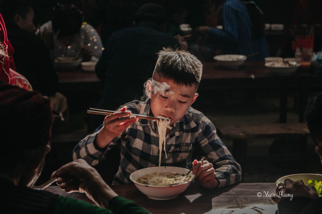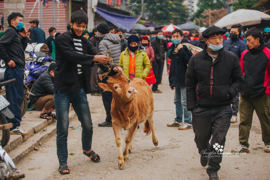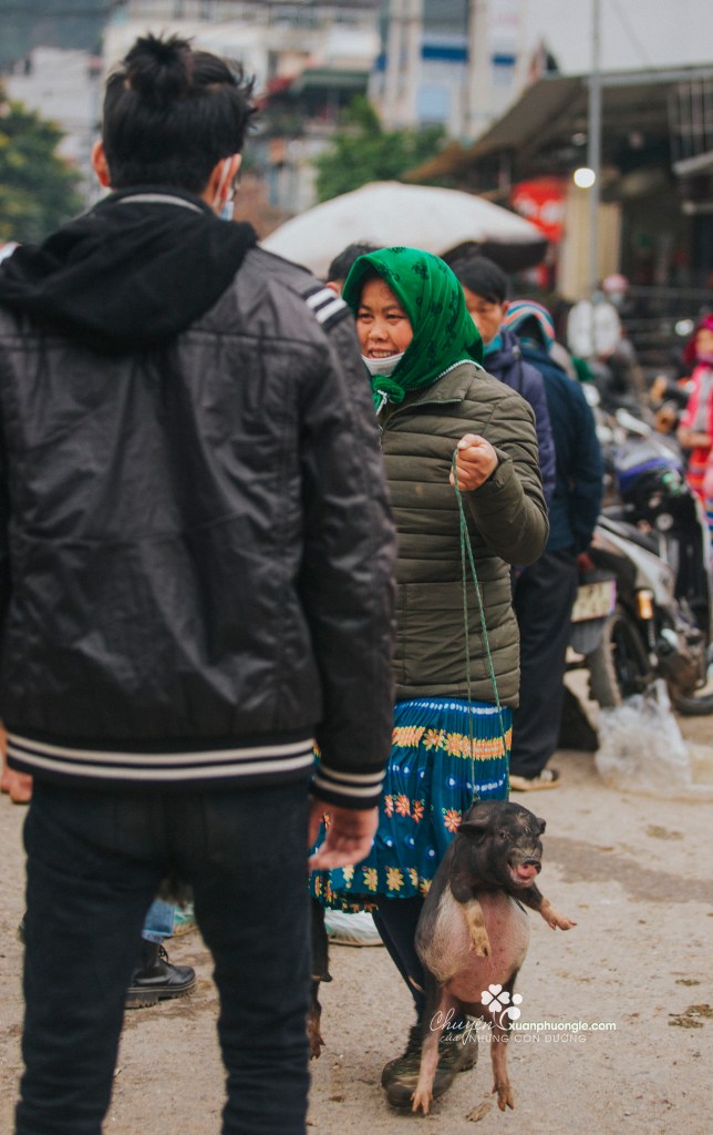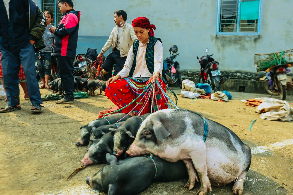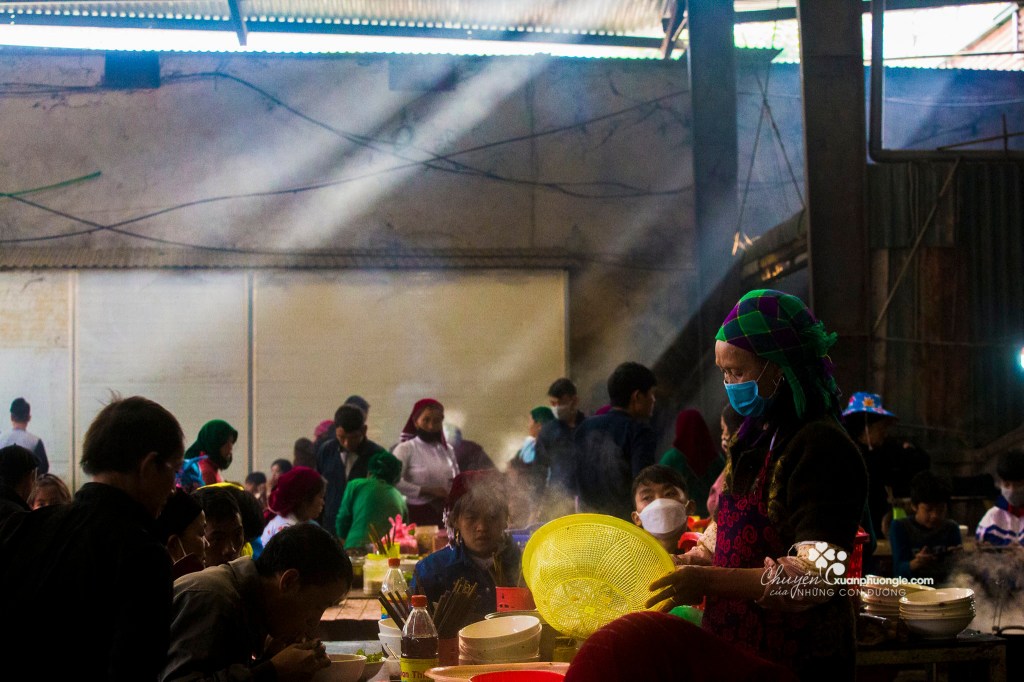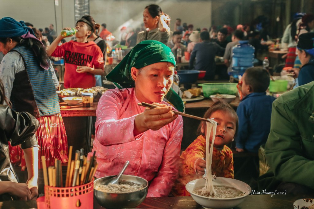 The most fascinating part is the livestock market. Here, people bring pigs, goats, deer, cows, and dogs for sale. The food section offers a variety of highland specialties like “thắng cố” (a local dish) and pho. For men, it’s also a place to socialize over drinks alongside the hot pot each week.