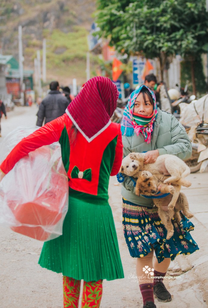 Every Sunday morning, people from all over the Ha Giang rocky plateau wake up early, on winding roads snaking around the mountain slopes, heading to the central market of Meo Vac for the weekly market gathering. People from various ethnic groups like H’Mong, Dao, Lô Lô… all dressed vibrantly, carrying local products, from livestock, fabrics, agricultural produce to medicinal herbs.
