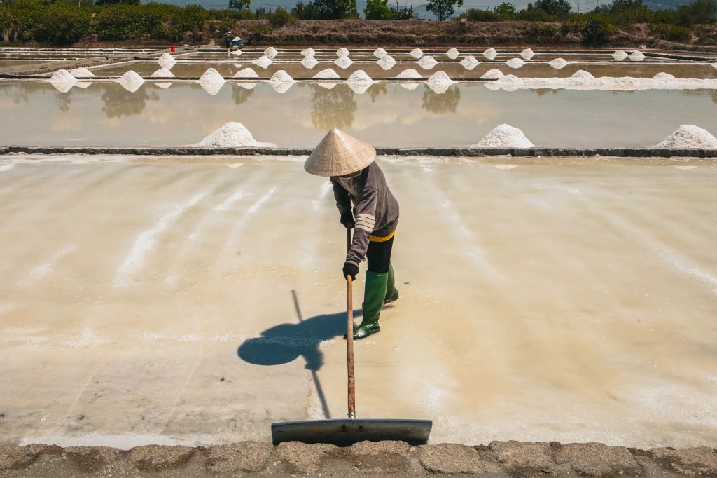 Vietnam’s coastline, stretching over 3,000 kilometers, not only provides bountiful boats filled with fish and shrimp but also produces pristine, flavorful grains of white salt.